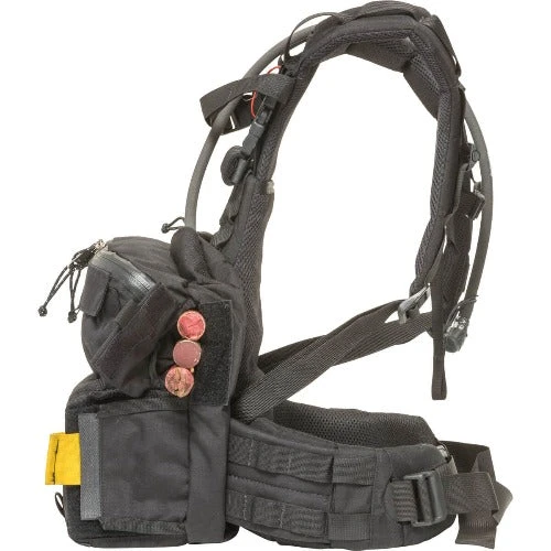 - The Fire-specific yoke, featuring our patented Futura system, telescopically adjusts to any torso length and promotes ventilation. The full-length adjuster within the Futura system of the fire pack has a mounted aluminum stay, providing more rigidity. The Fire-specific internal frame consists of a single, vertical, fiberglass rod against an HDPE frame sheet. Together, these create a full-length, stiffened body panel that transfers the weight into the wings of the waist belt. The Mystery Ranch firefighter pack also features a Redirect waist belt system that secures in a natural, forward pull direction that requires less effort to tighten and with patented features and construction methods, the waist belt cants and conforms over the hips to effectively transfer and distribute the weight eliminating slippage over the hips.