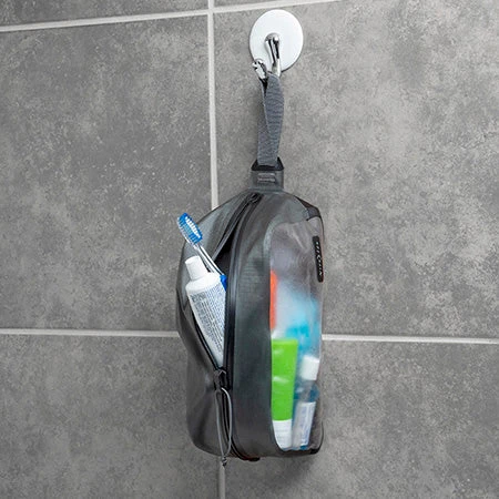 This Waterproof Toiletry Bag makes organizing and accessing your items easy while protecting your gear from leaks and messes. Featuring a wide-mouth design, sturdy base, and translucent front, this large-capacity RunOff bag keeps the contents easy to find and accessible. Designed to work just as well whether sitting on a counter or hanging from a hook, the Waterproof Toiletry Bag incorporates a strong, easy-hang handle and a smooth glide zipper that can be opened without the contents falling out.