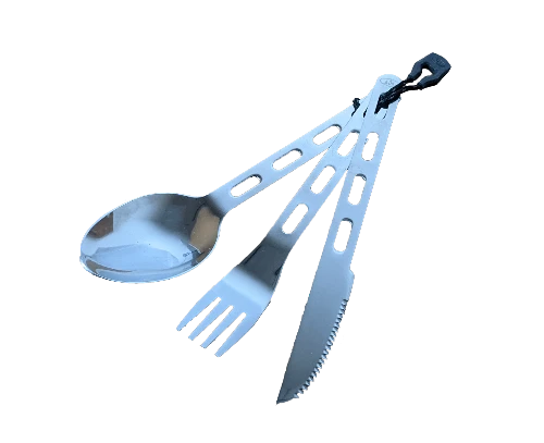 The Glacier Stainless 3 pc. Cutlery Set forged stainless steel construction offers a bombproof set of utensils that is light enough to pack yet strong enough to face any adventure, high or low.