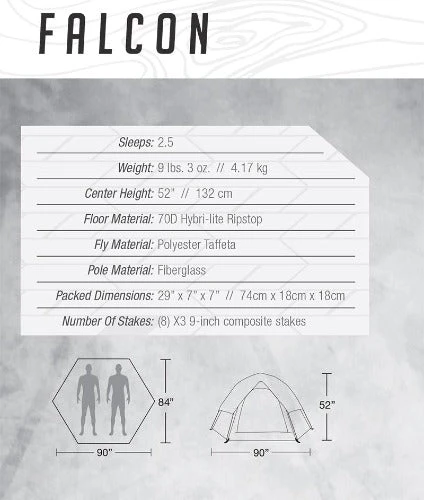 The Falcon Tent has recently received a facelift and a set of new, smarter features to make a classic even better. With a new ripstop nylon tub floor and tough nylon webbing for fly attachment, the Falcon is tougher than ever. With the addition of double ventilation panels in the roof of the tent body, a gear loft for storing essential items overhead, a footprint perfect for a queen air mattress, and a versatile pole and accessory bag included, the Falcon is more comfortable than ever. With a truly reversible fly, color coded attachment points, and a higher quality fly pole, the Falcon is easier and and more attractive to set up. Whether it’s catching a couple of hours of sleep in between fighting wildfires, or taking the family to your local state park, you’ll be proud to call the new SpeeDome tents home.