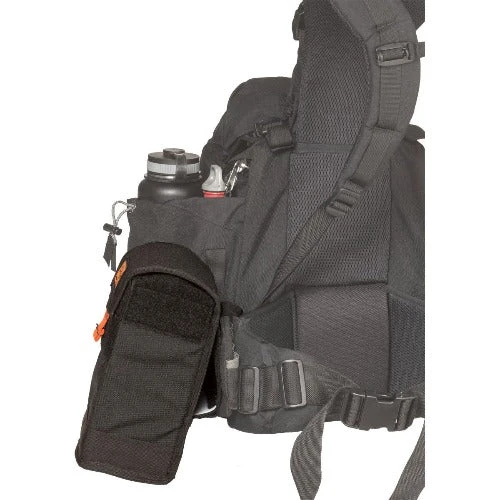 This vertical fire shelter case aligns the shelter with the hip on the waist belt for quick access. Keeping the shelter tucked away as close to the pack as possible lets you work and hike with minimal interference. A specially designed wedge kicks the shelter out away from the hip and leg to eliminate chafing.