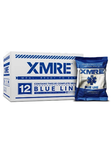 The XMRE Blue Line provides 800 to 1,400 calories of high quality shelf stable (36 months) components. All components are fully cooked so they can be eaten right out of the pouch, and may include nut free and/or low sodium. The XMRE Blue Line has been specifically engineered to meet the critical requirements of government institutions, medical facilities, educational institutions, municipal entities, public service entities, and emergency preparedness programs. Each option includes 12 MRE meals per case. All components are packed in high-density water and tamper proof XMRE XT Series outer bag and embossed with a lot number (pack date) on each bag and case.
